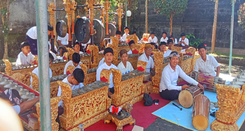 Siswa Spenstar "Ngaturang Ayah Nabuh" dalam Rangka Piodalan di Kantor Camat Petang